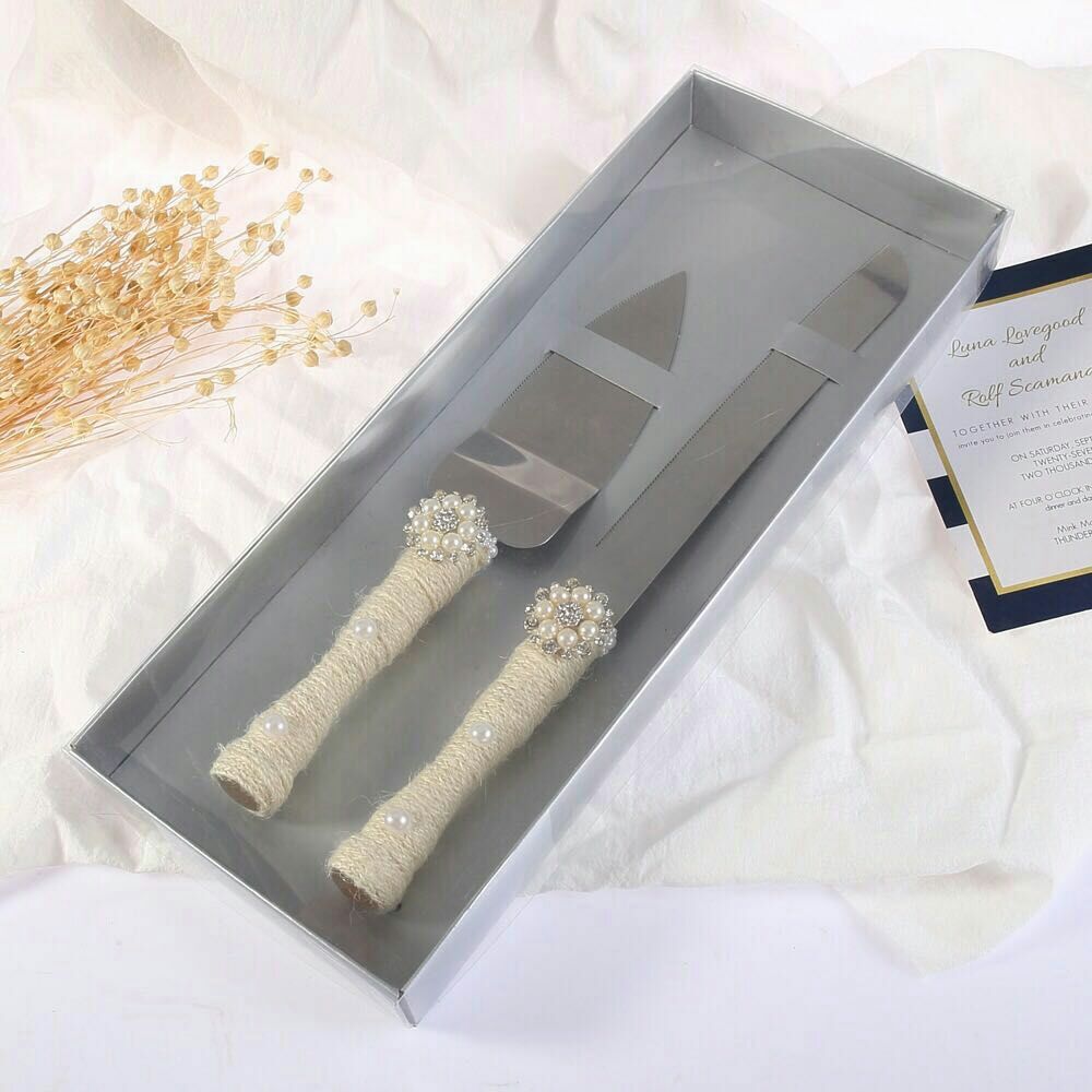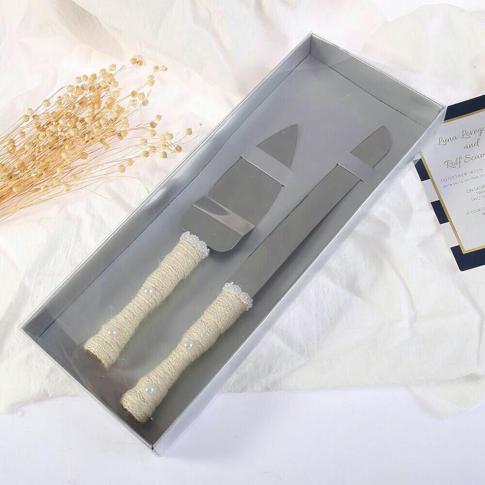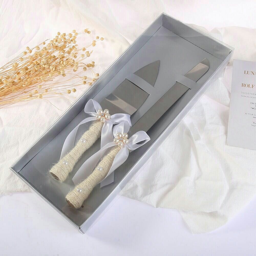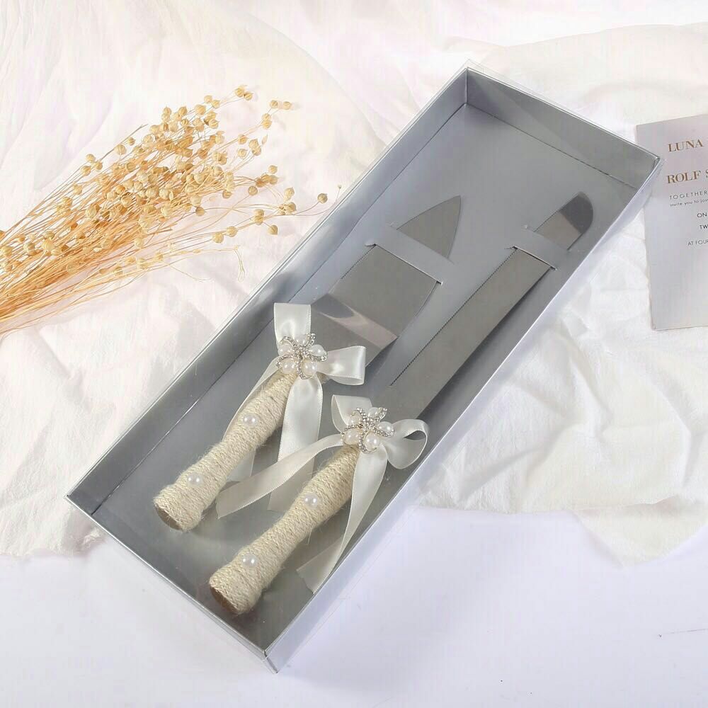 love heart wooden bow wedding knife shovel brown linen lace stainless steel cake knife shovel