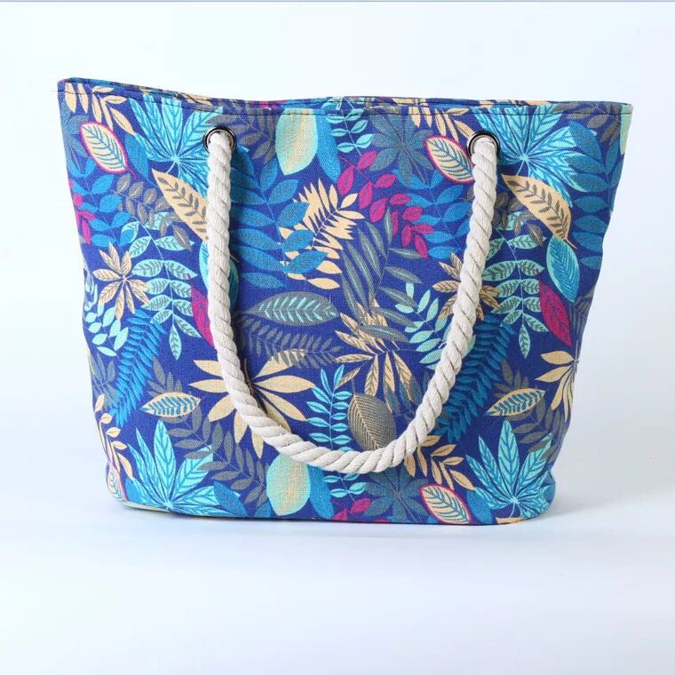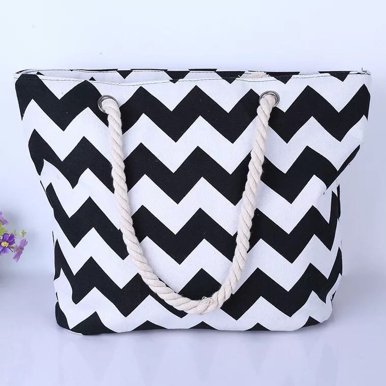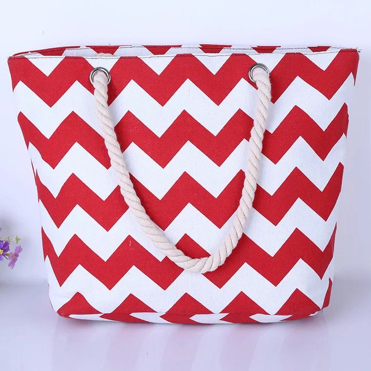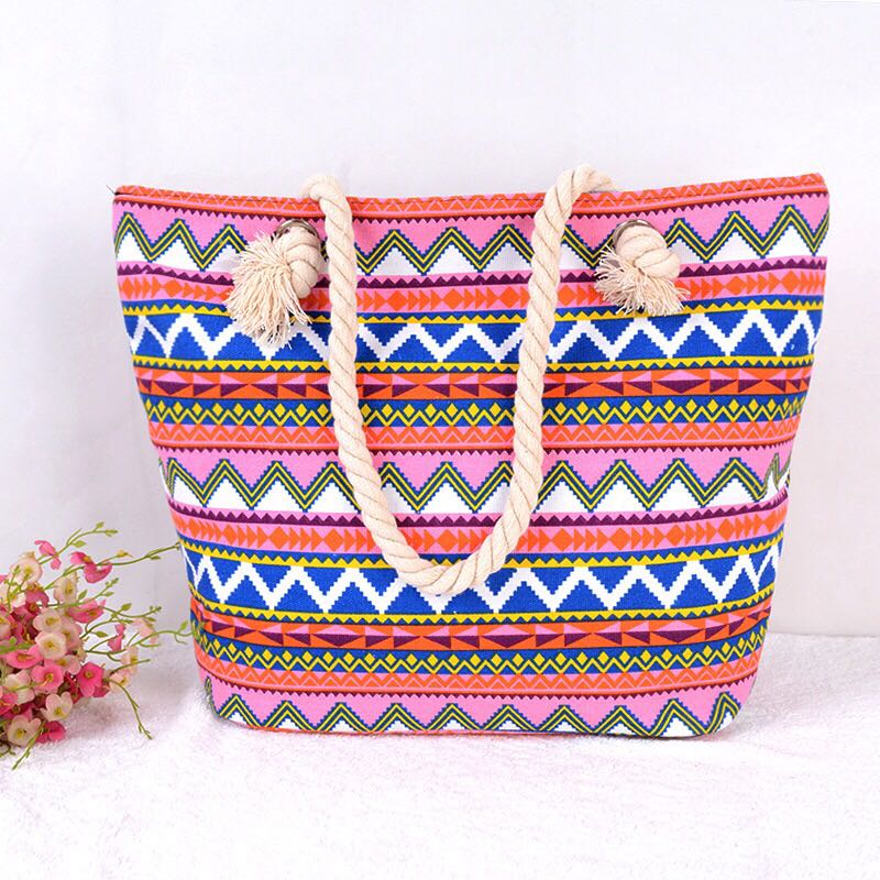 export cotton string shoulder bag beach bag ethnic style striped bag large capacity canvas bag