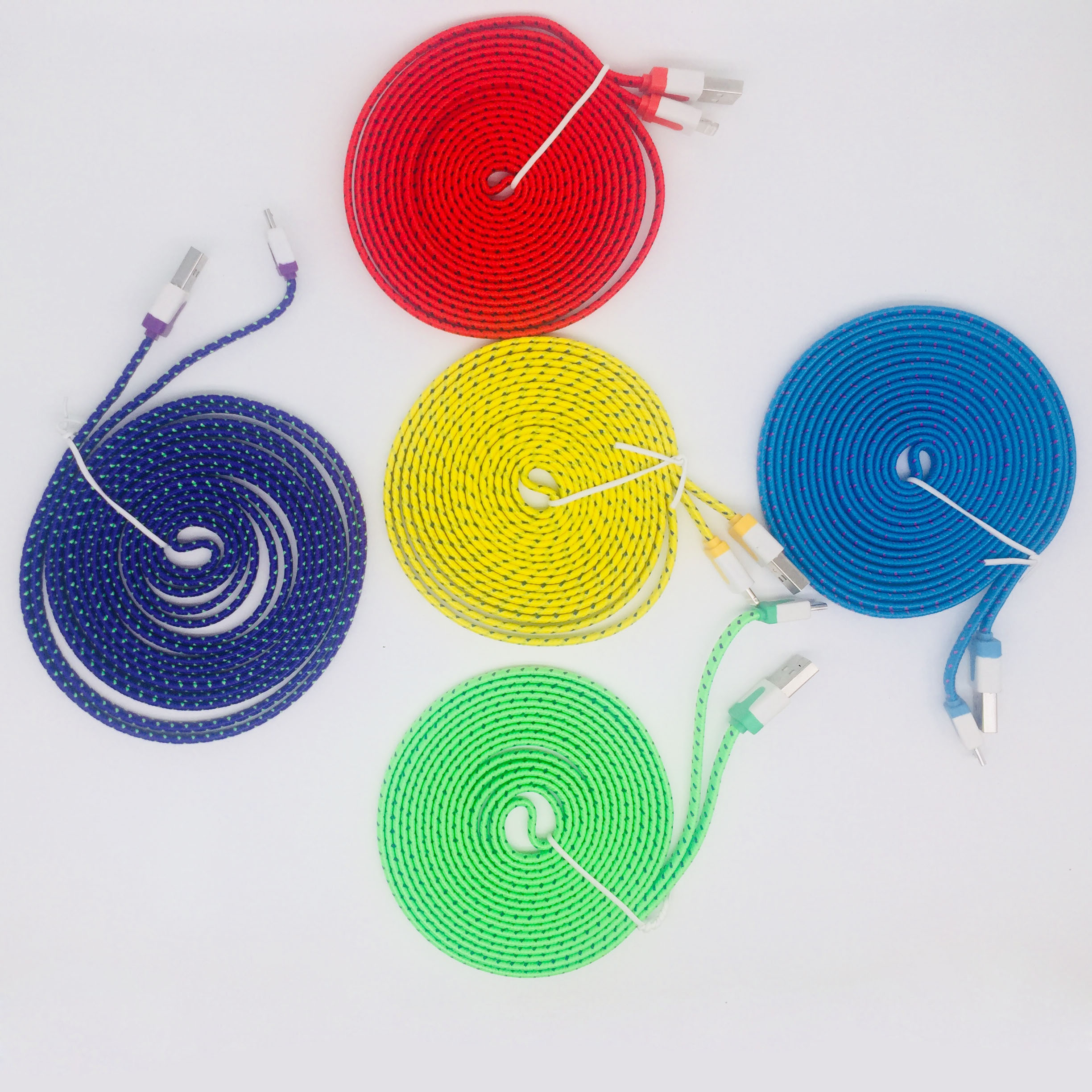 Lengthen 3 meters to weave noodle phone data cable USB data cable android apple noodle phone data cable