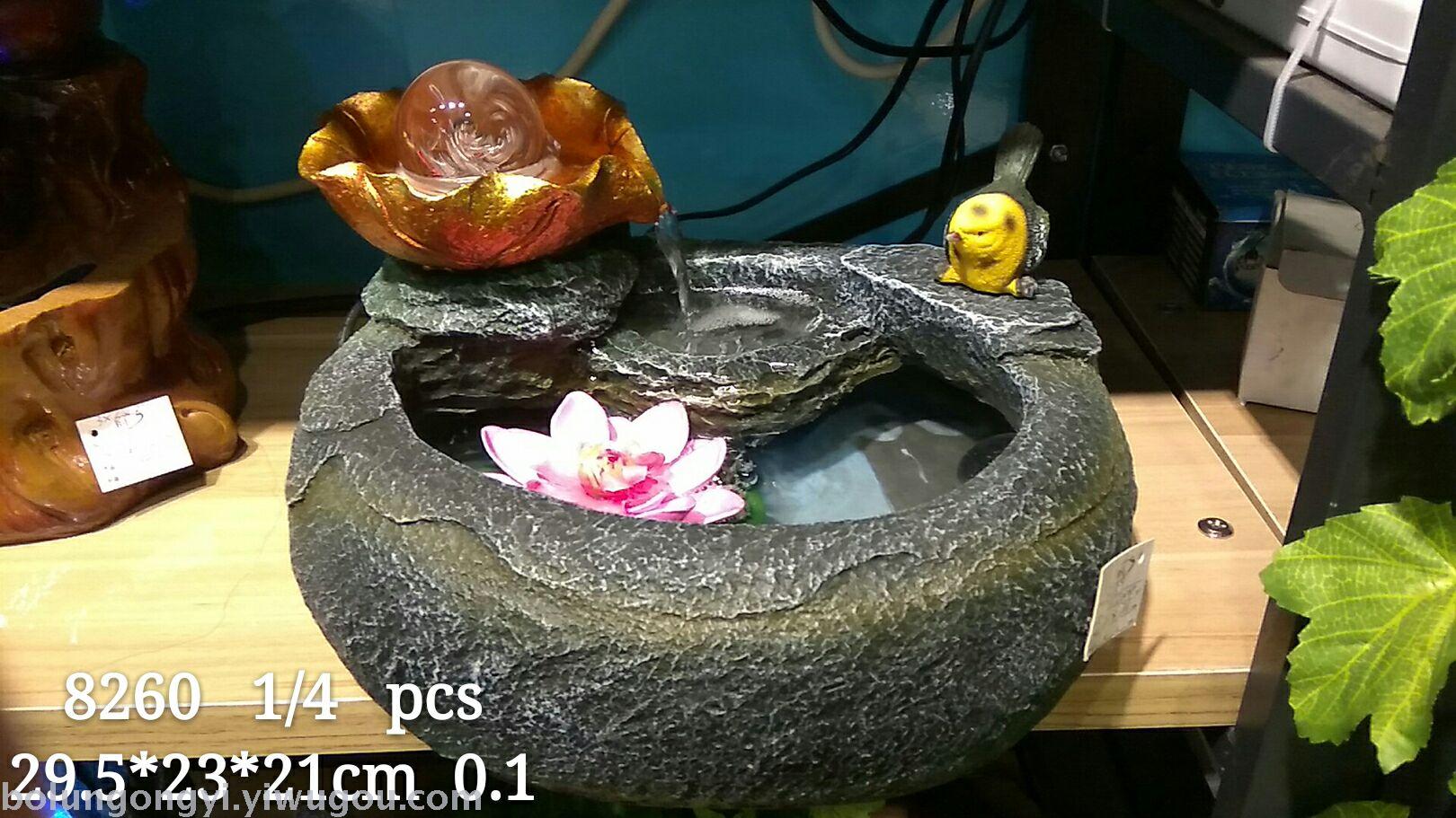 Water flow resin crafts bring a certain humidity to the air, and at the same time can decorate and beautify the space, purify the air, and can be placed freely in the living room and study room. This model can also be used to fish. Model: 8260, product size: 30*23*21CM, packaging: single model, one box of 4 pieces, volume: 0.11, foam packaging.