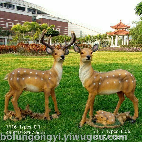 Artificial Sika Deer, realistic in shape and color, adorable, loved by adults and children, suitable for decorating various occasions. Model: 7117/7116, material: resin, product size: 45*17.5*55/49.8*19.8*67.5CM, packaging: 1 box with 1 piece, volume: 0.06/0.1 cubic meters.