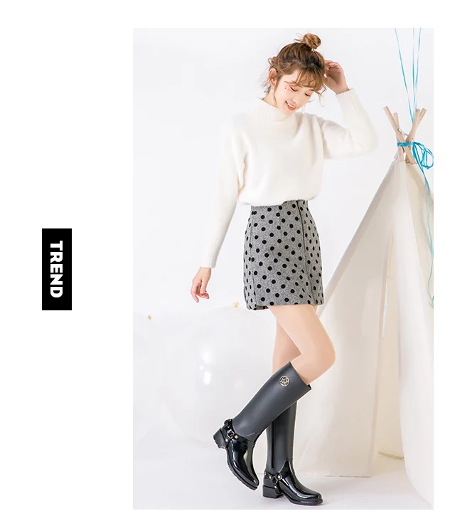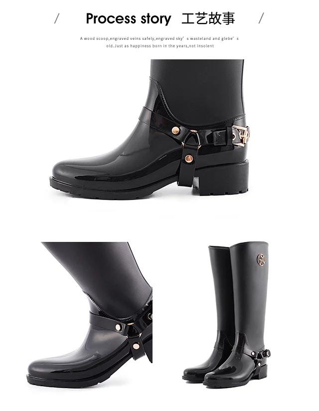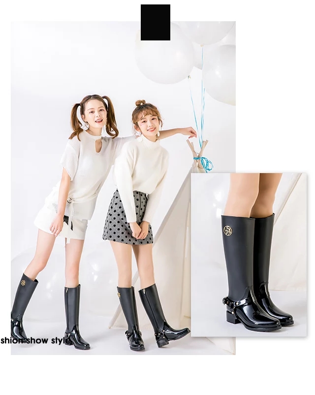 korean spring and summer new high-calf knight riding boots inside zipper rain boots women's non-slip overshoes