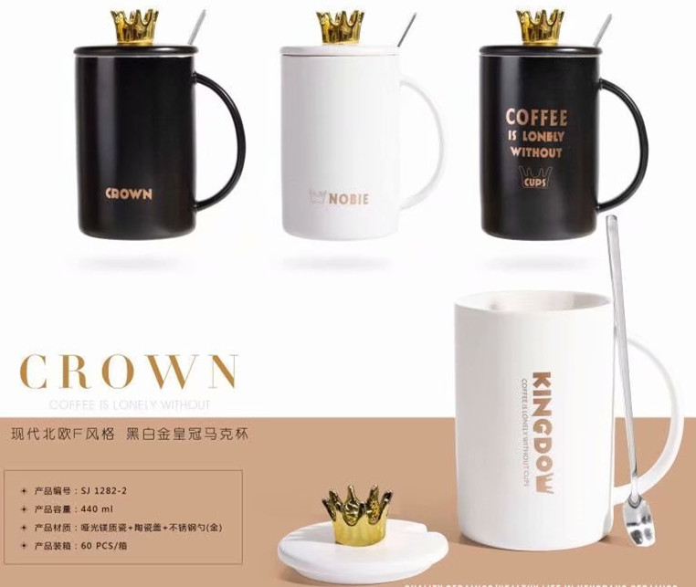 electroplated crown ceramic cup black and white fashion mug