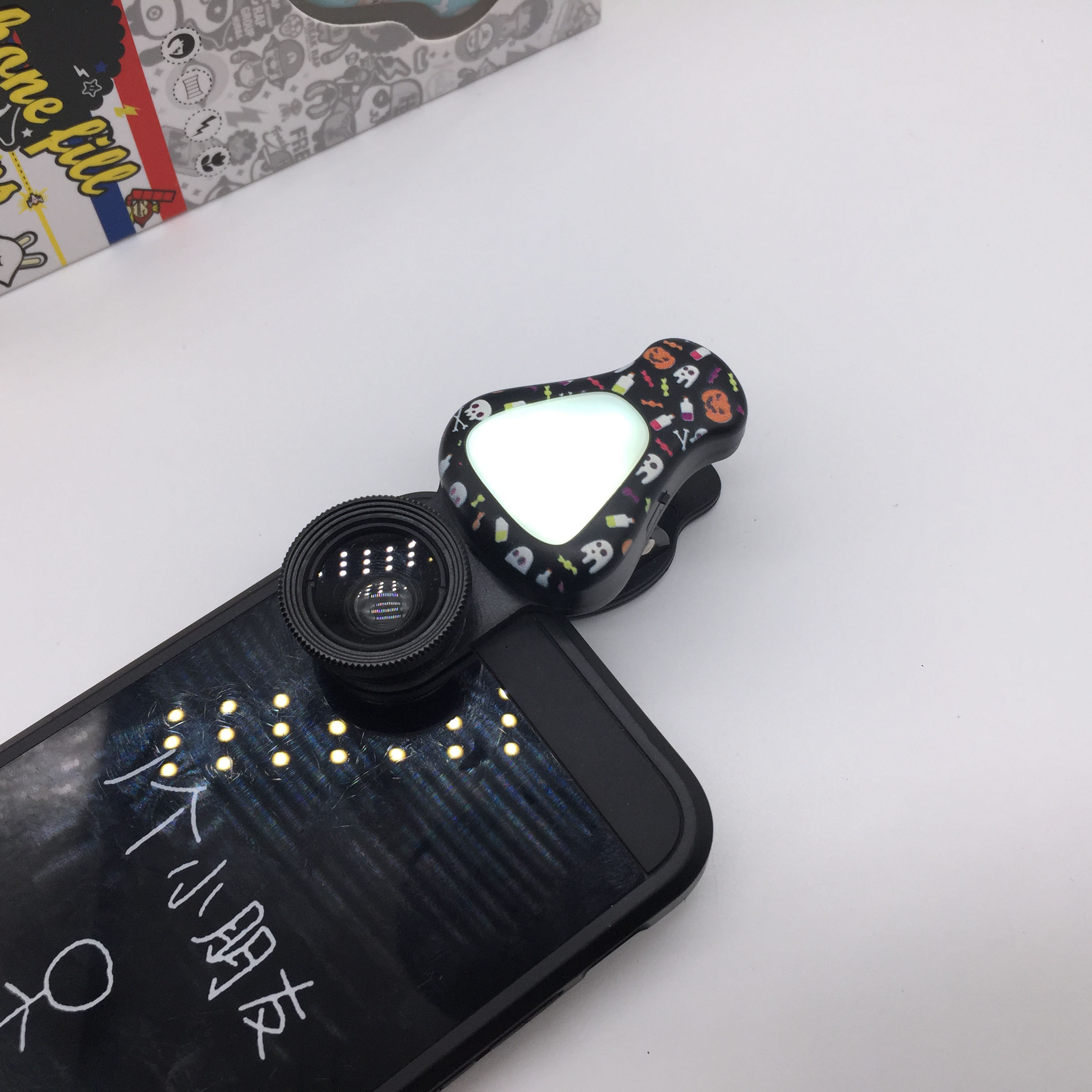 Mobile phone lens LED tint lamp beauty special effect cartoon three in one fisheye wide Angle macro lens