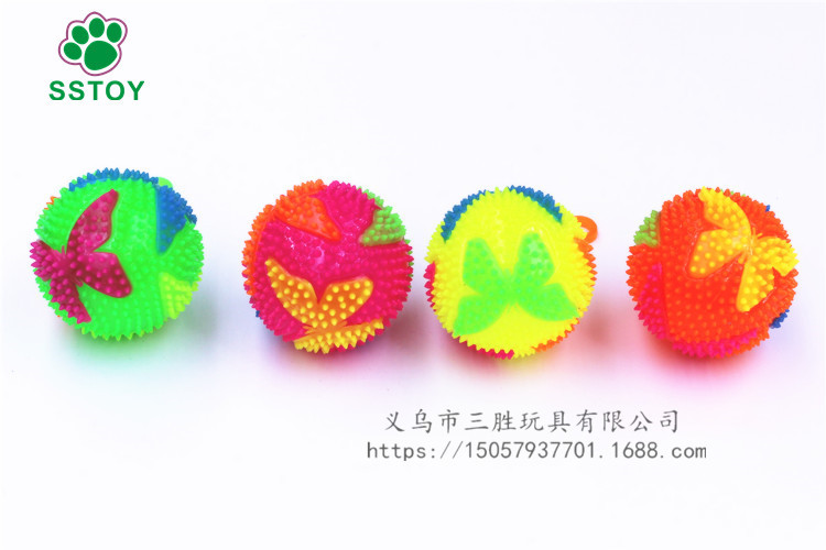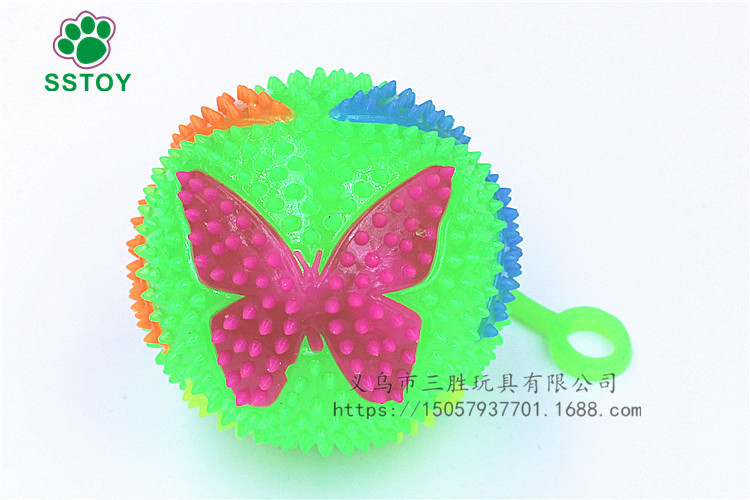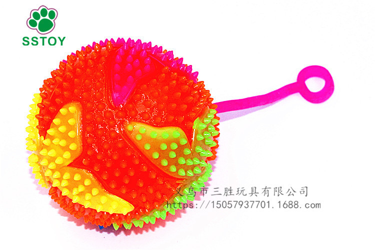 玩法:小手放进小提环内,一弹一弹的小球内的彩灯就会跟着一闪一闪的,非常漂亮,使劲的摔它、撕它也不会把它损坏的。非常结实。白天当弹力球玩,晚上闪出五彩灯光更加漂亮。一个彩盒里面4色混发。