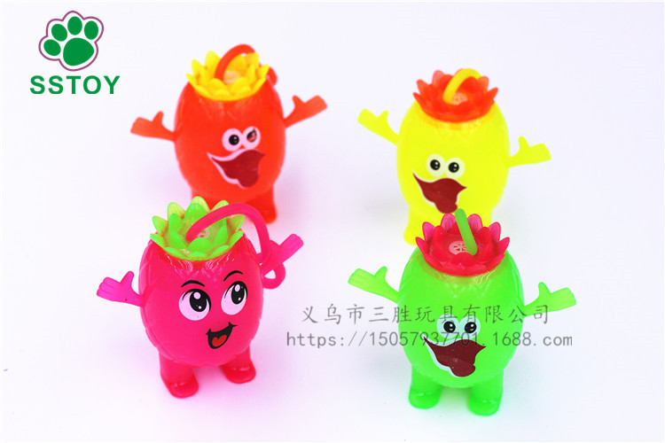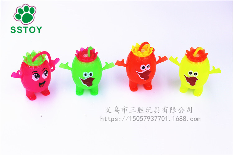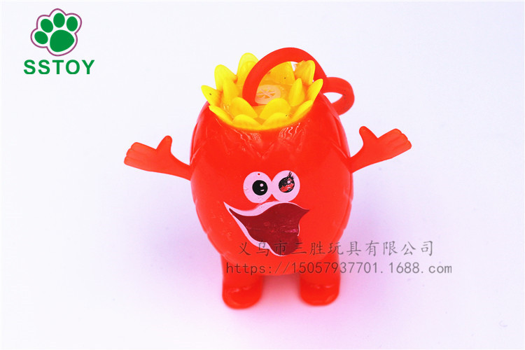 玩法:小手放进小提环内,一弹一弹的小球内的彩灯就会跟着一闪一闪的,非常漂亮,使劲的摔它、撕它也不会把它损坏的。非常结实。白天当弹力球玩,晚上闪出五彩灯光更加漂亮。一个彩盒里面4色混发。