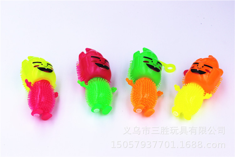 玩法:小手放进小提环内,一弹一弹的小球内的彩灯就会跟着一闪一闪的,非常漂亮,使劲的摔它、撕它也不会把它损坏的。非常结实。白天当弹力球玩,晚上闪出五彩灯光更加漂亮。一个彩盒里面4色混发。