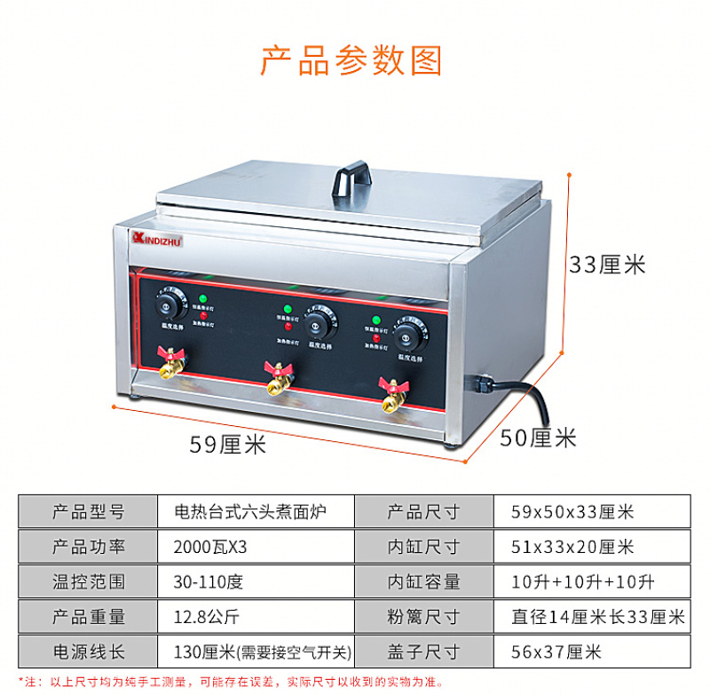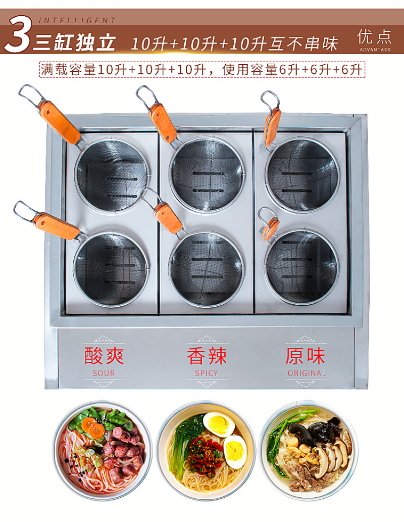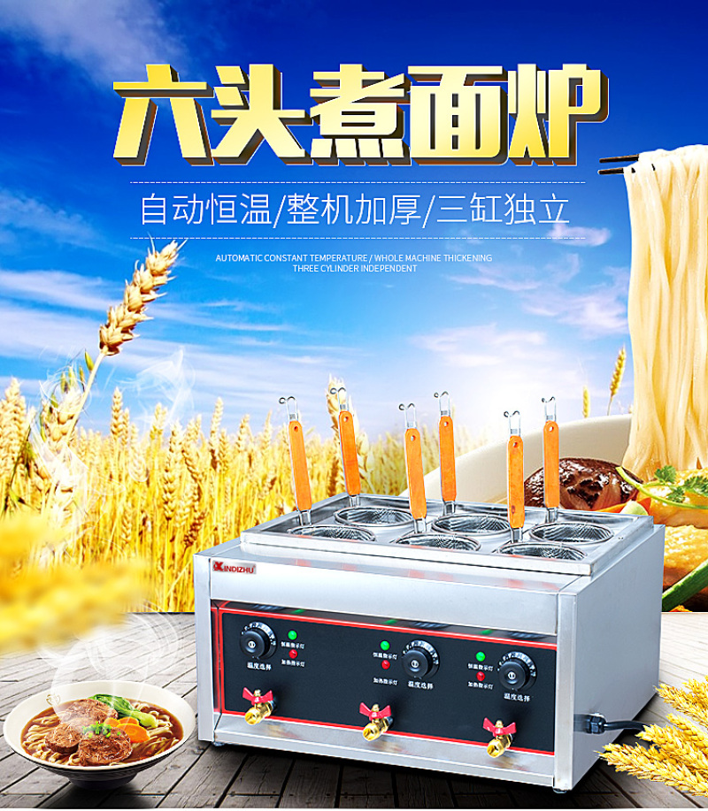 Gas tabletop six-head noodle cooking machine