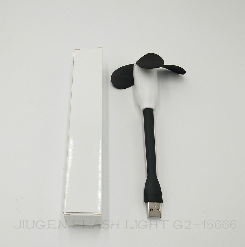 A small USB flash fan with a long flashlight