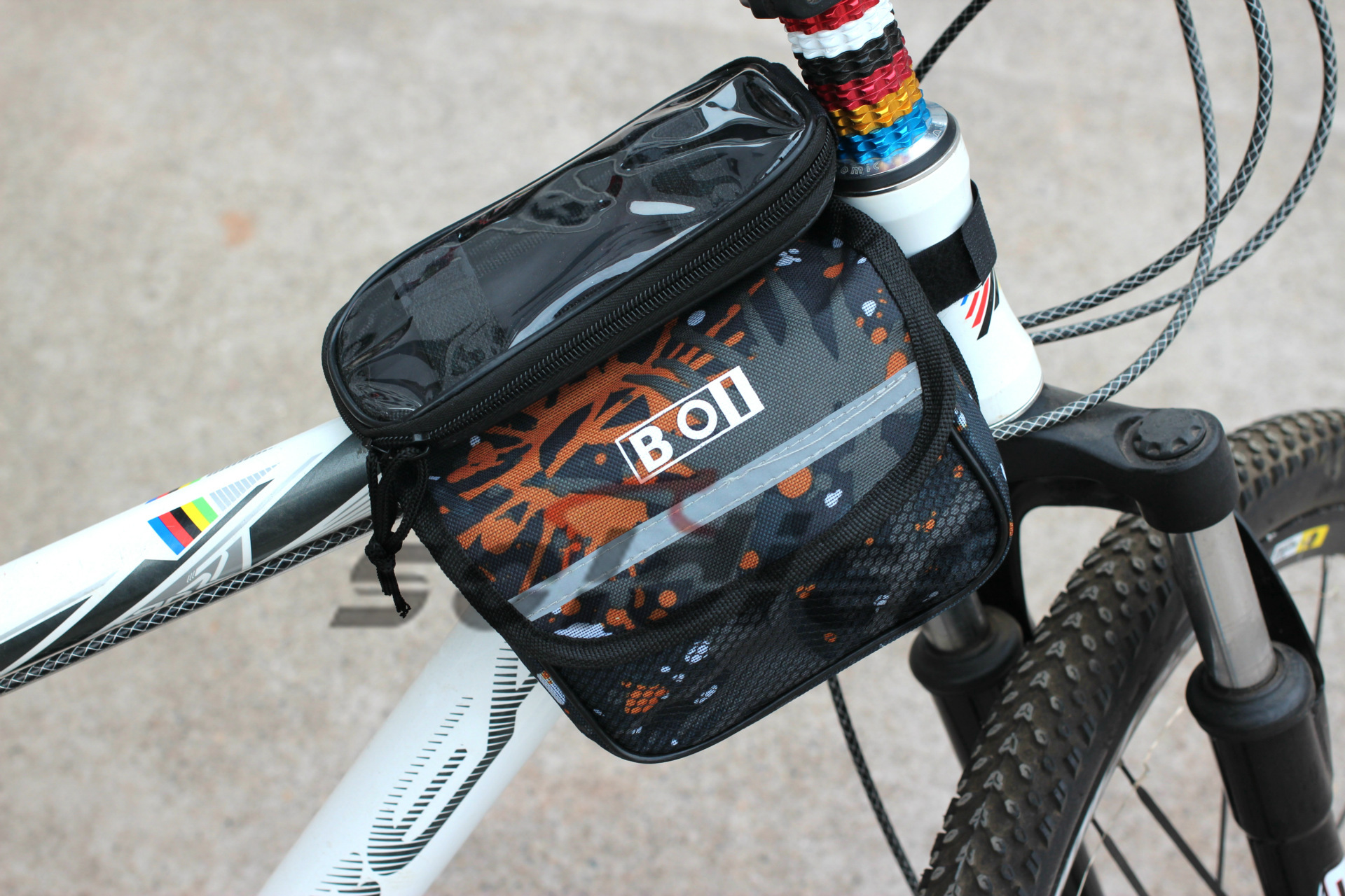 About Product:Mobile phone bag on both sides of bicycle detachable upper tube bag in camouflage bag / / BOL removable Mobile phone to both sides package weight: about 155 g size: 15 * 17 * 17 cm