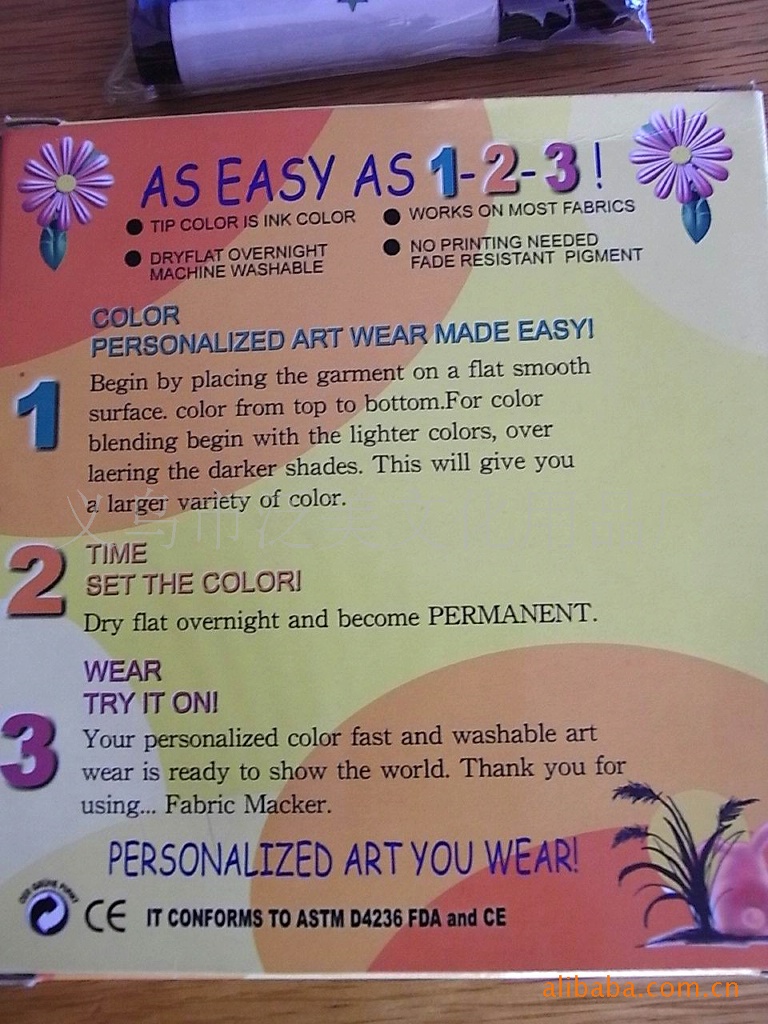 This textile mark pen ink water non-toxic, environmental protection and sanitation; Eight heavy metal elements including antimony, arsenic, barium, cadmium, chromium, lead, mercury and selenium meet the test requirements of EN71 part1-9 in Europe and ASTM d-4236 in the United States.