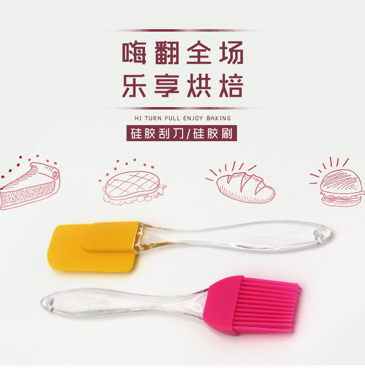 Transparent handle silica gel small brush resistant to high temperature baking brush silica gel brush + scraper two-piece cake cream