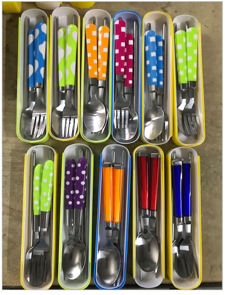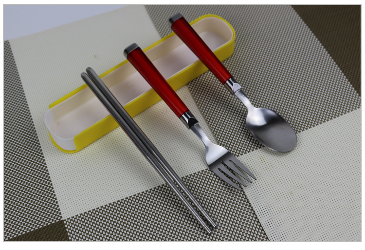 Chopsticks, spoon and fork set, portable cutlery set, three-piece travel student creative storage box