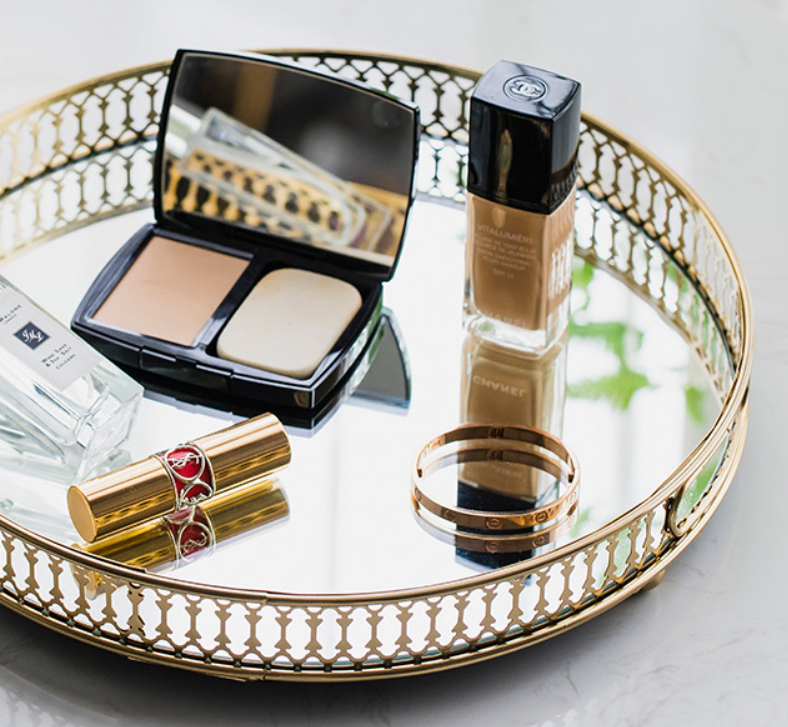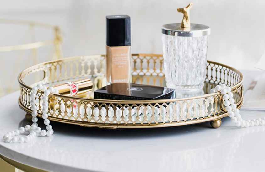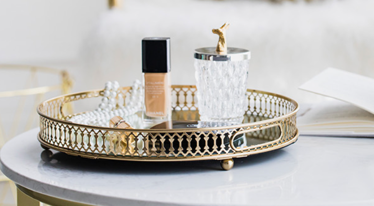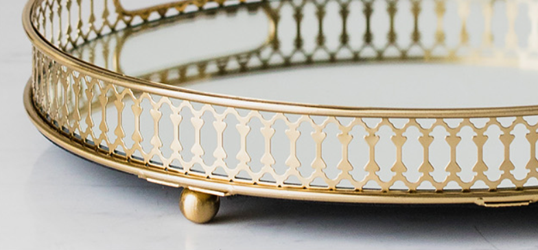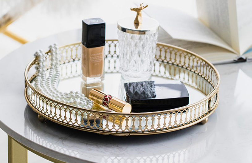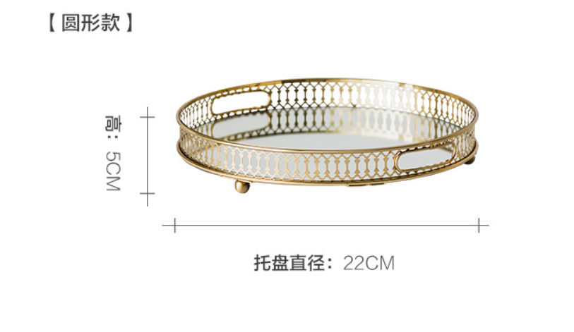 modern american golden glass mirror bottom cosmetic storage tray living room dining room light luxury fruit plate