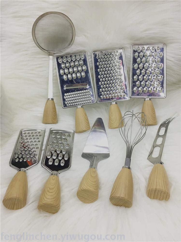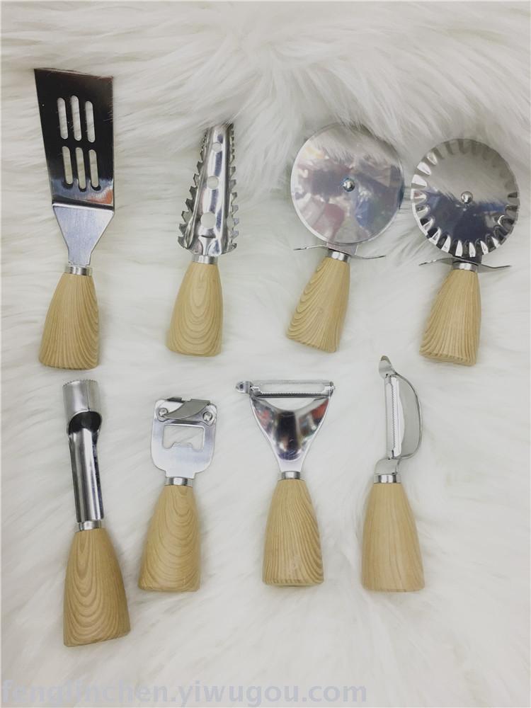 creative new imitation wooden handle toy coyer kitchen good helper pizza cutter egg beater shovel fruit core remover multi-functional grater