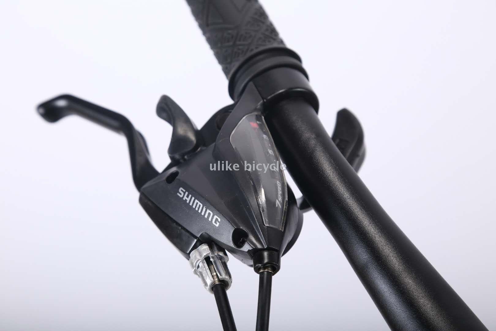 26-inch high carbon steel frame 21 speed 38 tube black shoulder shine leg Seal the inner axle copy shimano one to one 26*195 imitation jumbo tires Lanxi legs imitation jubilee hood Rotating disc brake