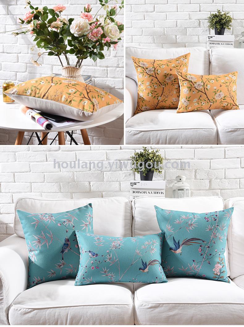 New Chinese style cotton and linen pillow cover cloth art pastoral plants flower sofa cushion office car decoration