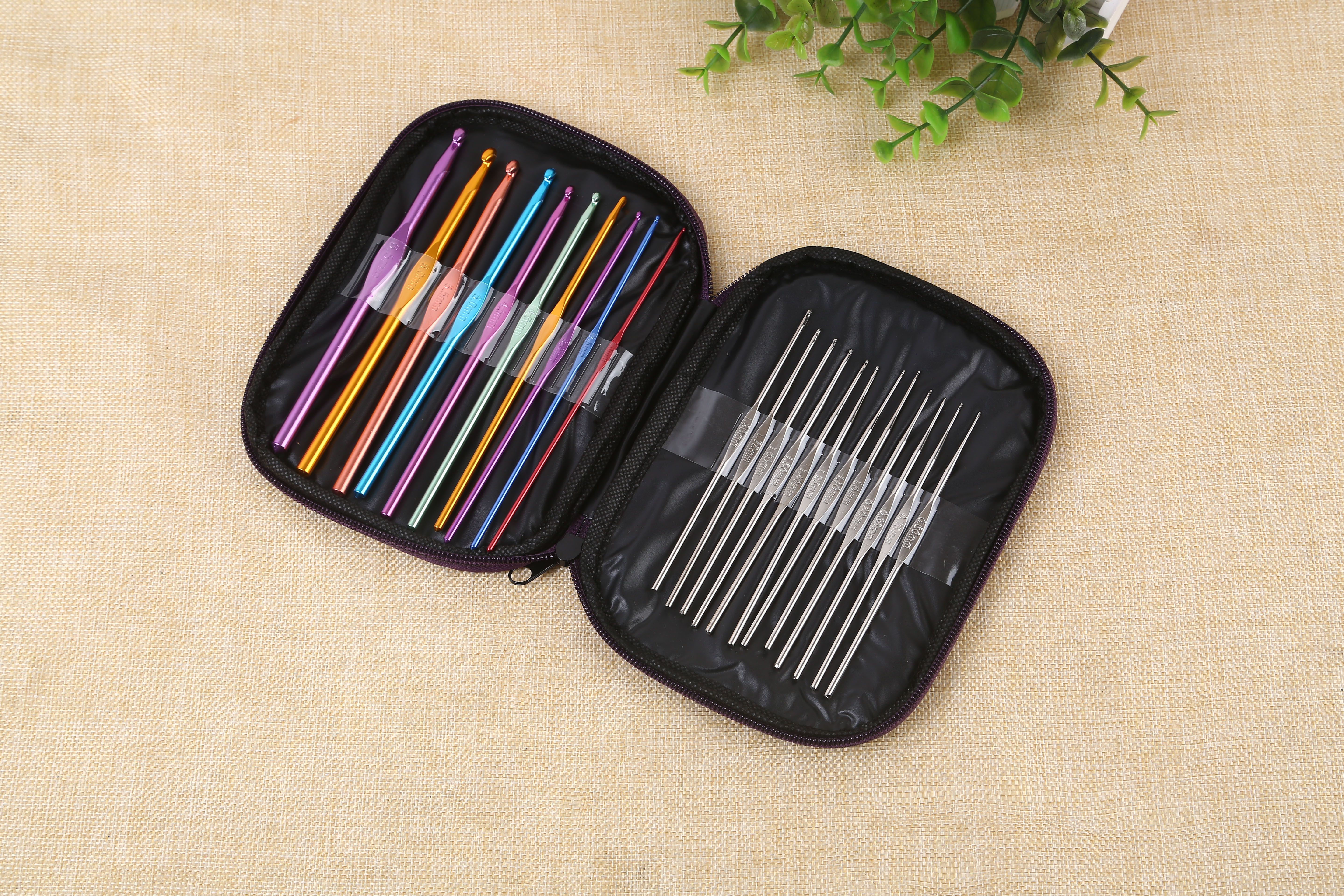 Specification: Colorful crochet needles (10 pieces each) in sizes 2mm, 2.5mm, 3mm, 3.5mm, 4mm, 5mm, 5.5mm, 6mm, and 6.5mm.
