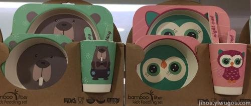 Environmental protection natural plant bamboo fiber children's tableware set 5 sets of cartoon baby divided into plate and bowl