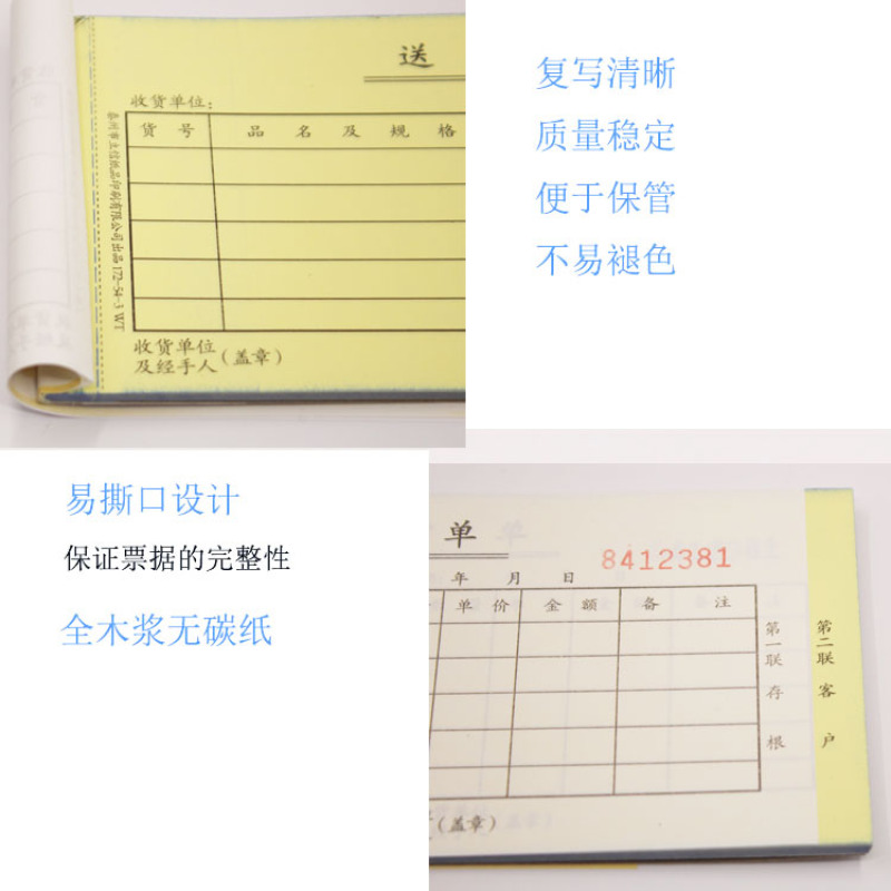 product features: inner core APP advanced carbonless copy paper, no need to pad carbon paper, direct writing, convenient and practical.