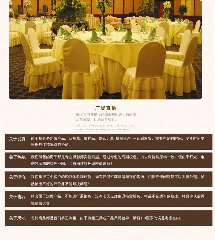 Our company specializes in production and wholesale???? Chinese-style hotel textile cloth product such as tablecloth, chair cover, table skirt, turntable cover, napkin, Cup cloth, napkin, etc; ???? Hotel guest room bedding such as bed sheet, quilt cover, fitted sheet, bed skirt, bed runner, pillow, etc; ???? European wedding, banquet, party supplies such as: elastic chair cover, chair back high-end decorations, European popular tablecloth, etc. ? We only do what we can do to make our products more professional and superior in quality. ? All kinds of fabric styles of our factory can be customized, and can also be customization as request! ? Factory Direct sales, cheap and good, gives you the best service and the most competitive price. ? Tel: 15869299996 (Miss Gong)? ? 0579-85058867 welcome to inquire!?? ? QQ:524727907 ?? WeChat: 524727907 WeChat * * * * * * * * * * * * * * * * * * * * * * * * * * * * * * * * * * * * * * * * * * * * * * * * * * * * * * * * * * * * * * * * * * * * * * * * * * * * * * * * * * * * * * * * * * * * * * * * * * * * * * * * * * * * * * * * * * * * * * * * * * * * * * * * * * * * * * * * * * * * * * * * * * * * * * * * * * * * * * * * * * * * * * * * * * * * * * * * * * * * * * * * * * * * * * * * * * * * * * * * * * * * * * * * * * * * * * * * * * * * * * * * * * * * * * * * * * * * * * * * * * * * * * * * * * * * * * * * * * * * * * * * * * * * * * * * * * * * * * * * * * * * * * * * * * * * * * * * * * * * * * * * * * * * * * * * * * * * * * * * * * * * * * * * * * * * * * * * * * * * * * * * * * * * * * * * * * * * * * * * * * * * * * * * * * * * * * * * * * * * * * * * * * * * * * * * * * * * * * * * * * * * * * * * * * * * * * * * * * * * * * * * * * * * * * * * * * * * * * * * * * * * * * * * * * *
