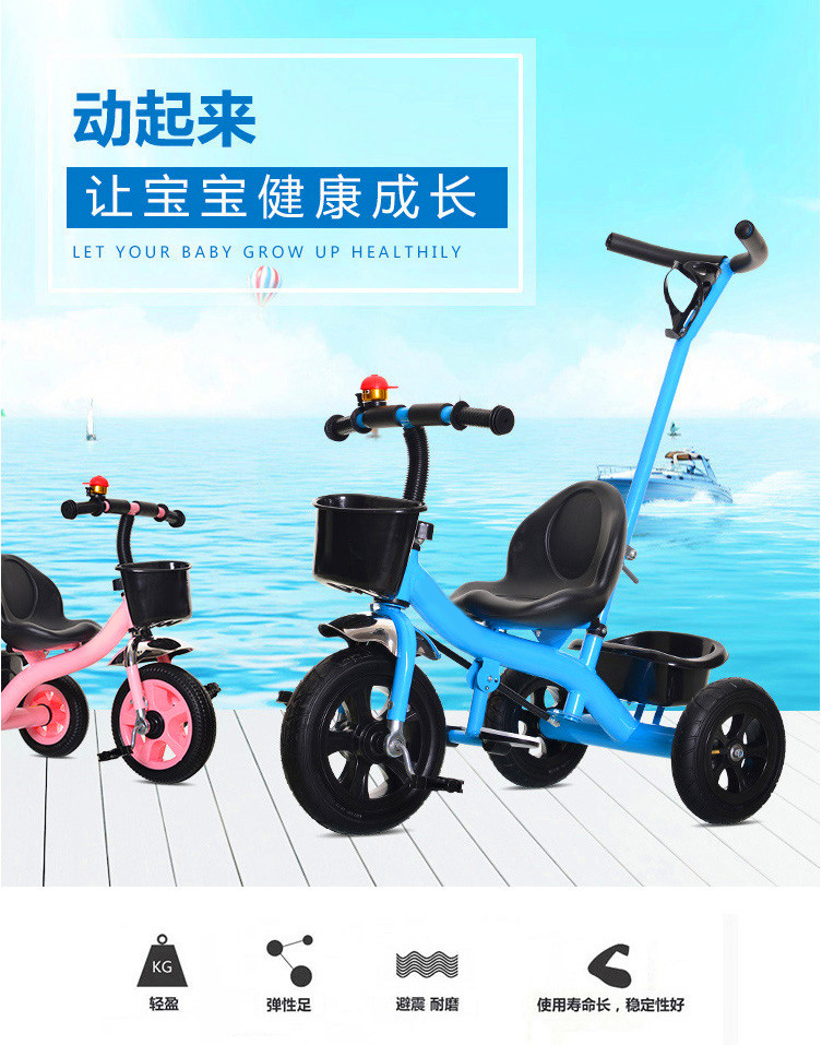 鸟王-儿童三轮车. 型号有 标配带兜,带推把。颜色:粉色,天蓝色,荧光绿,黑色。本产品主要供货外销出口公司及外商直接采购,本厂为拥有自营进出口权的生产企业.可FOB天津港,可收美金,可OEM来样代理加工.贴牌!公司品牌商标: “鸟王” “欧尔玛”