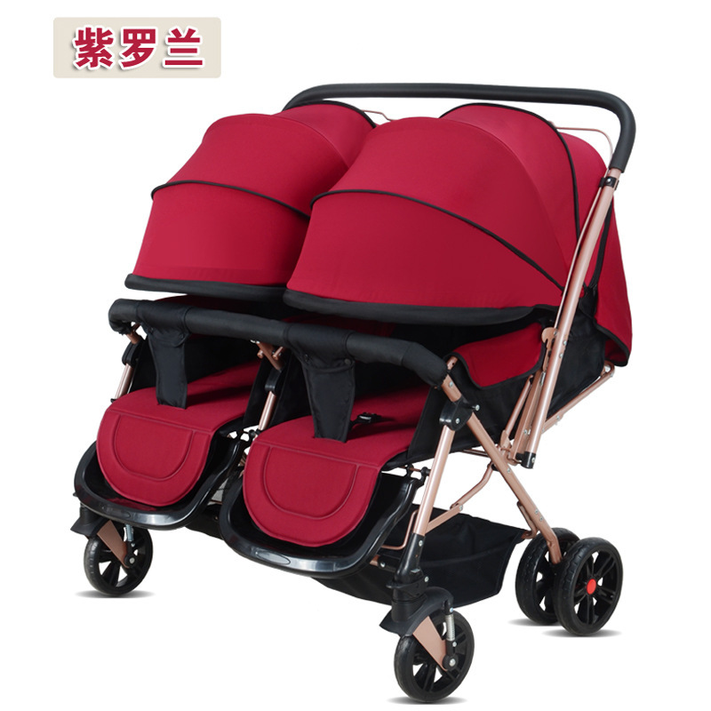 Twin baby stroller, high-viewing seat, away from car exhaust Twin baby stroller, not only can sit, but also can adjust the sitting and lying according to the baby's needs Twin baby stroller, two-way push, parents can always pay attention to the baby's every move