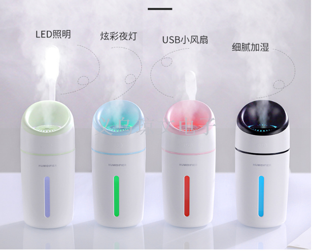 Product standard configuration: 1 x L8 humidifier main unit, 1 x USB fan, 1 x USB night light, 1 x sponge stick, 1 x data cable, 1 x English-Chinese user manual.