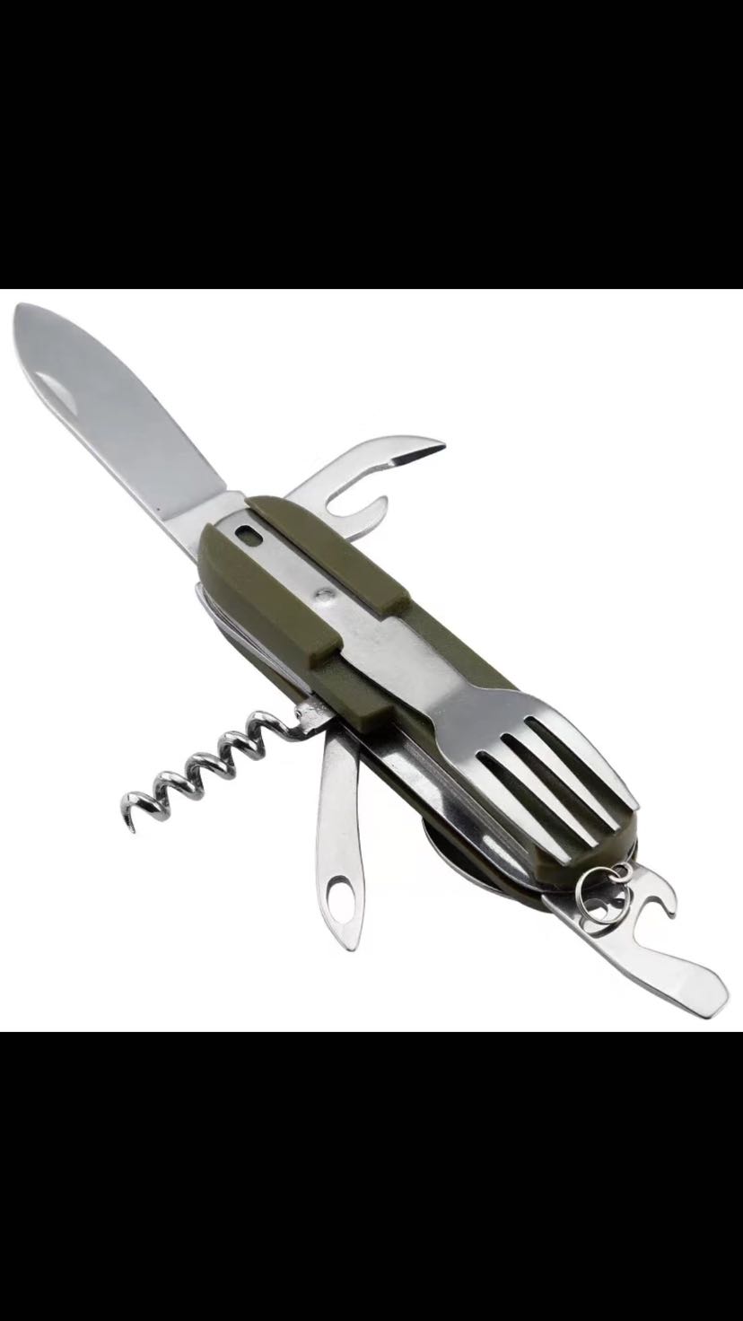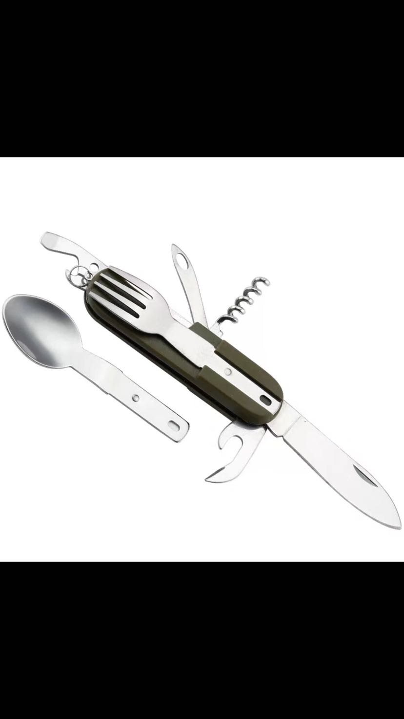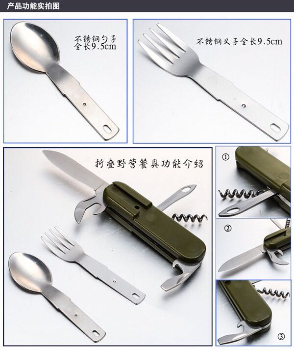 Is suing dining set portable combination of multi - functional is suing knife camping emergency lighting stainless steel dining set