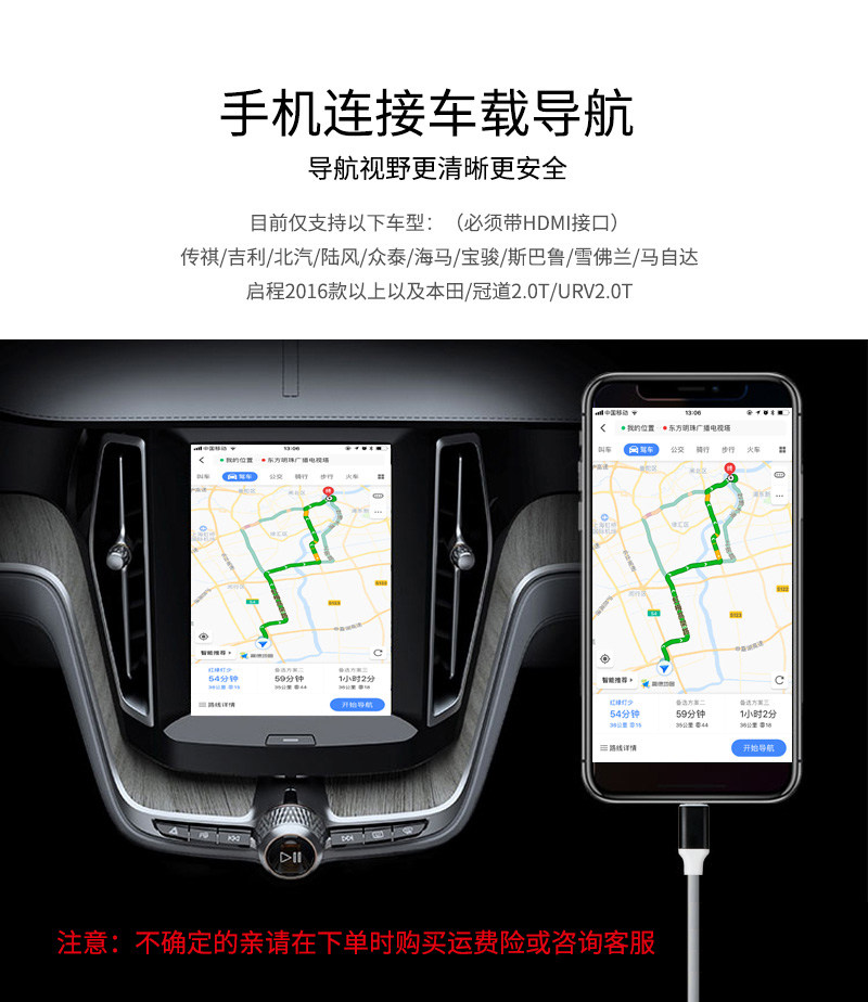 [Apple/Android mobile phone to HDMI + VGA] iPhone plug-and-play, audio and video can be transmitted synchronously; Android needs to set developer options, and only video can be transmitted.