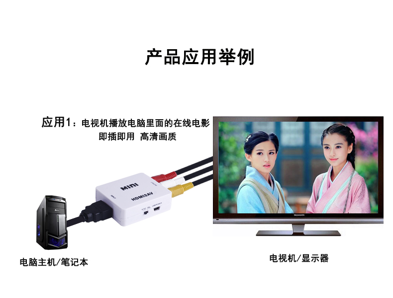 HDMI to AV Converter Cable with Audio MiBox Computer Connecting Projector Monitor TV19487