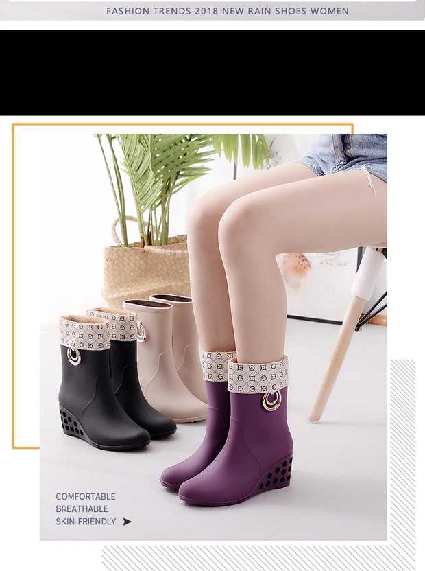 fashion rain boots women's short tube water shoes rain boots high heel rubber shoes mid tube water shoes
