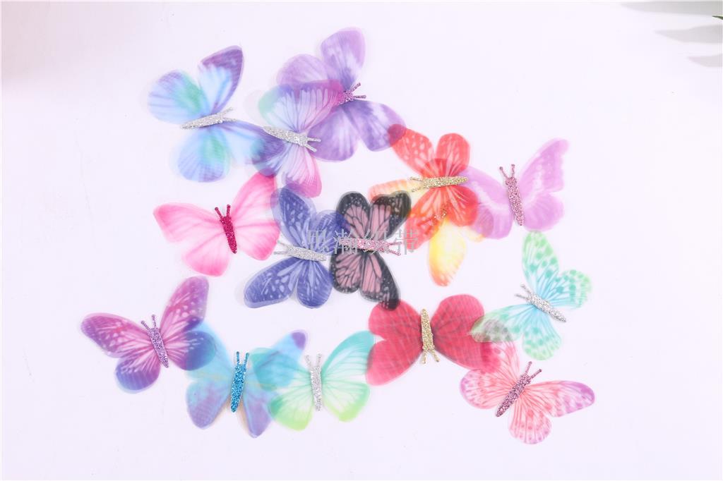 Double layer over color three-dimensional simulation yarn butterfly hand-made butterfly over jewelry wedding dress DIY accessories materials