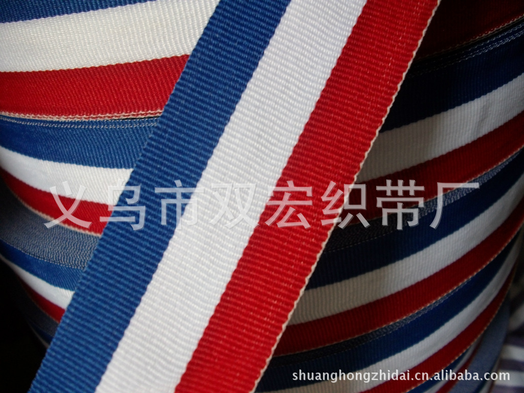 yiwu ribbon factory supplies clothing accessories 1cm red, white and blue three-color ribbon blue, white and red toys medal lanyard