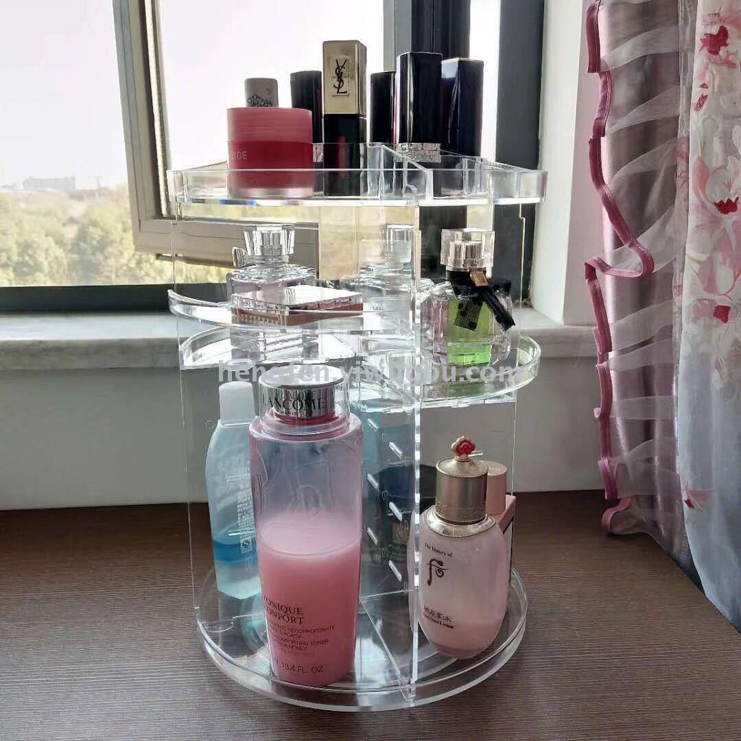 Cosmetic storage box transparent acrylic 360 degrees rotating plastic circular creative desktop waterproof rack