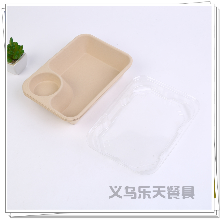 new sauce integrated disposable rectangular pulp salad box degradation straw lunch box fast food takeaway packing box