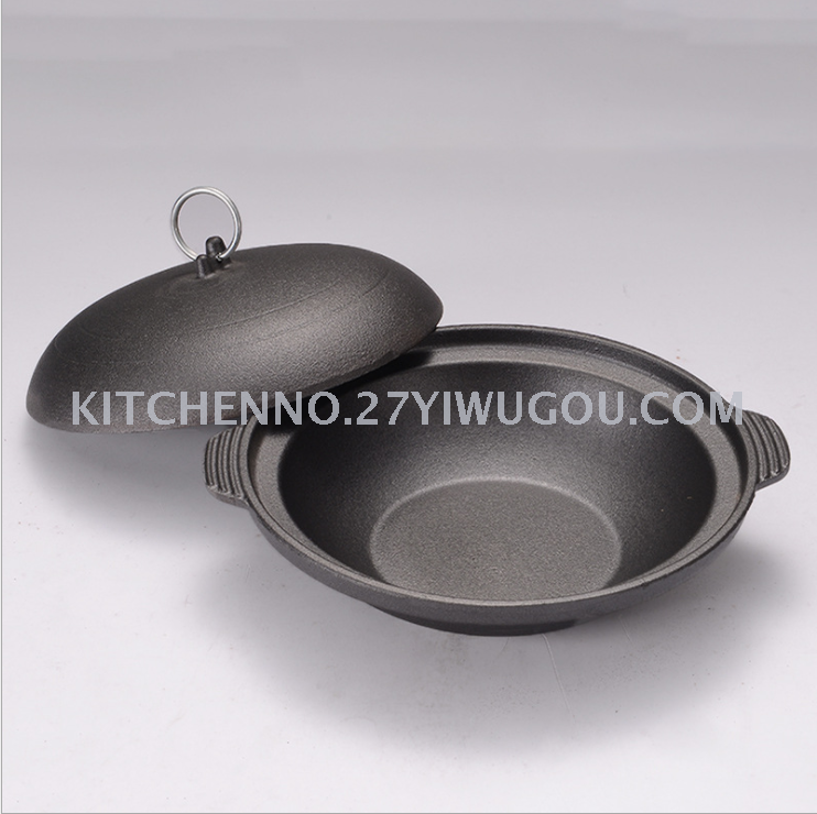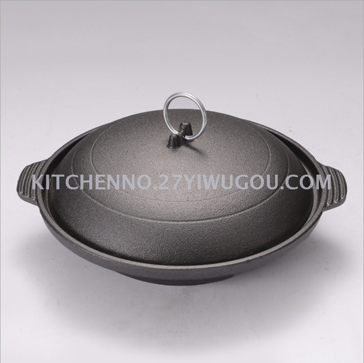Korean iron pot restaurant hotel soup pot outdoor camping iron pot flat with handle