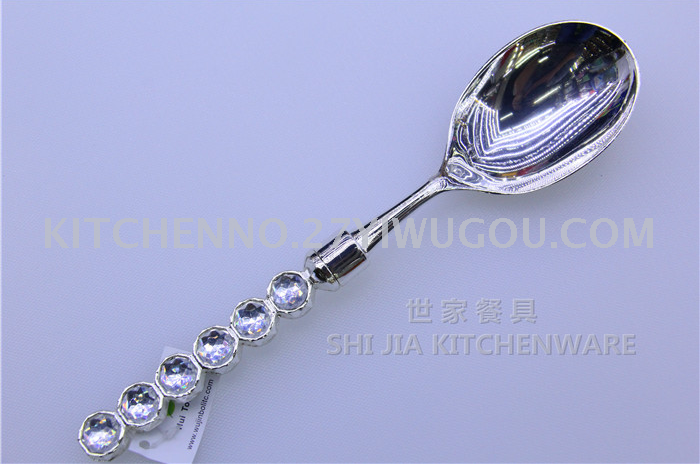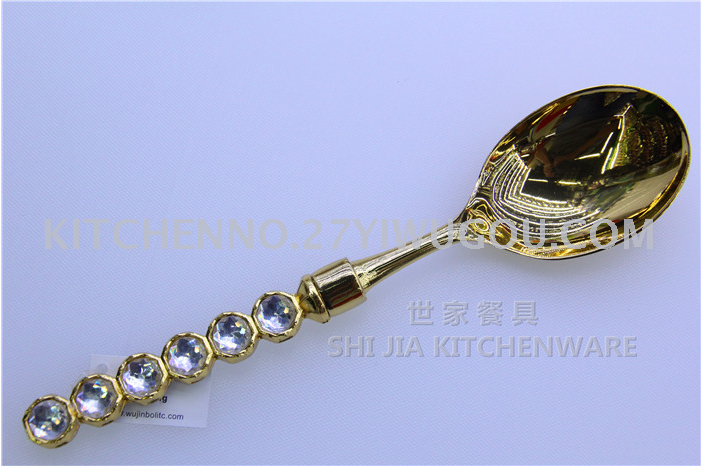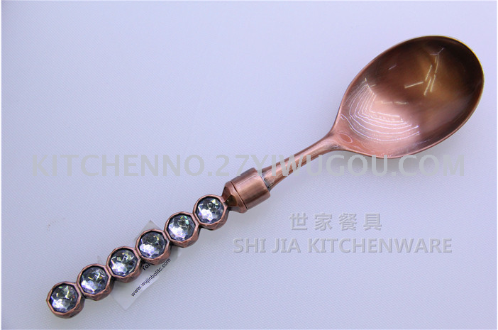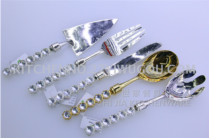 About Product:Zinc alloy family hotel communal tableware knife fork spoon cake shovel salad spoon colorful diamond handle zinc alloy