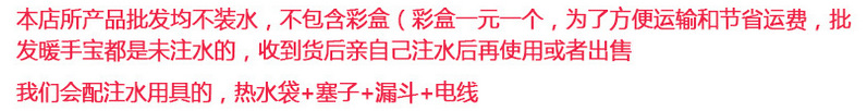 温馨提示:亲们,为保证热水袋质量,我们此款热水袋发货是未注入水的,收到货物之后可以自己简便注水,介意者慎拍哦。