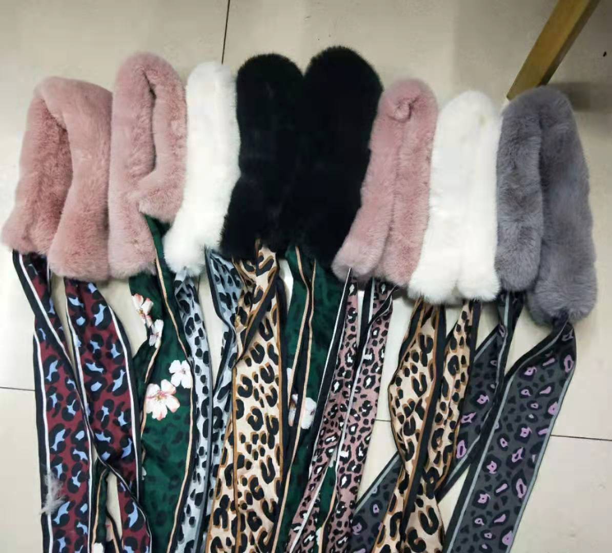leopard print real fur scarf rabbit fur ribbon ribbon winter fake collar