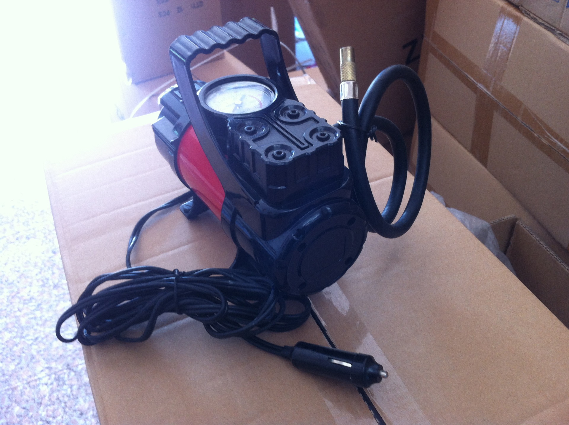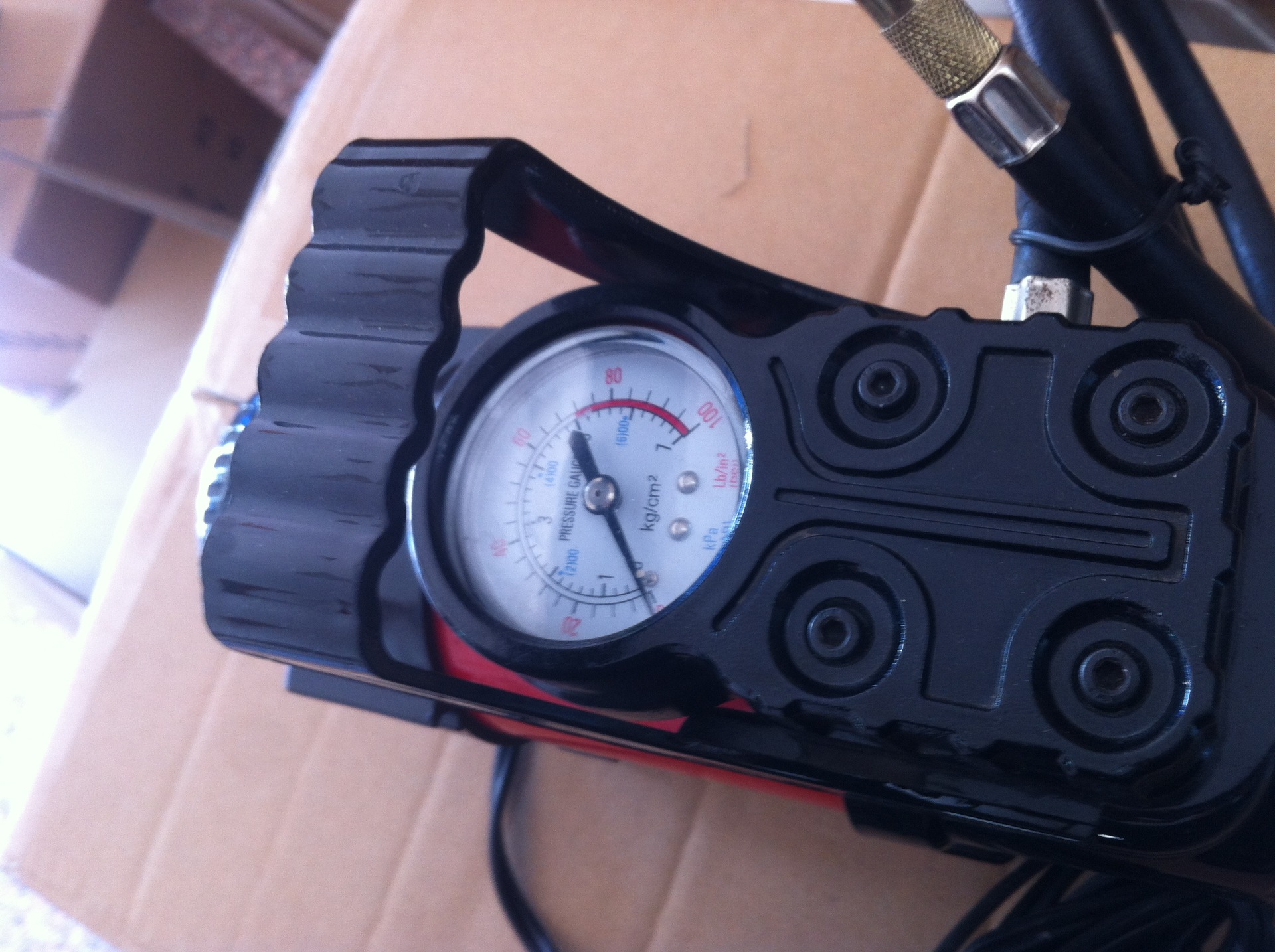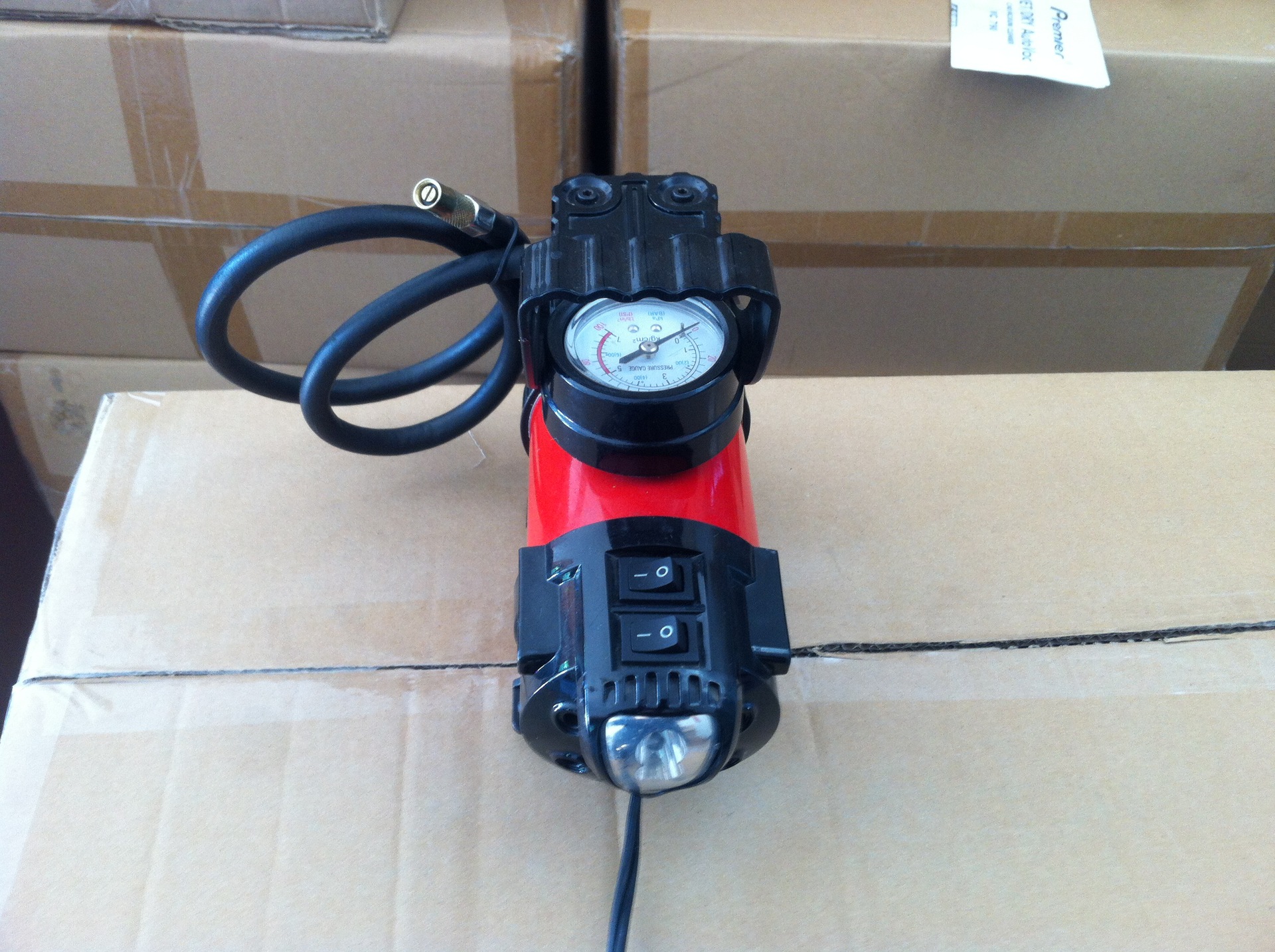 3. When inflating, the pointer of the instrument increases with the saturation degree of the tire. When the pointer reaches the appropriate tire pressure (generally, the tire pressure of the car tire is 223kpa = 35PSI ), take out the plug and air nozzle, and then finish the work.