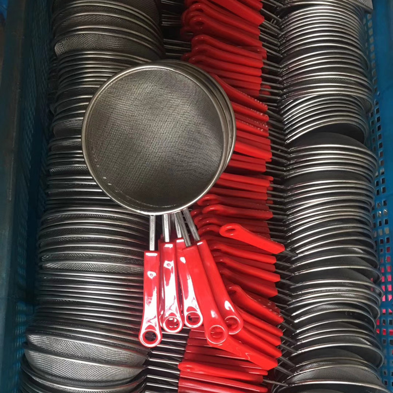 stainless sieve oil grid plastic handle oil grid