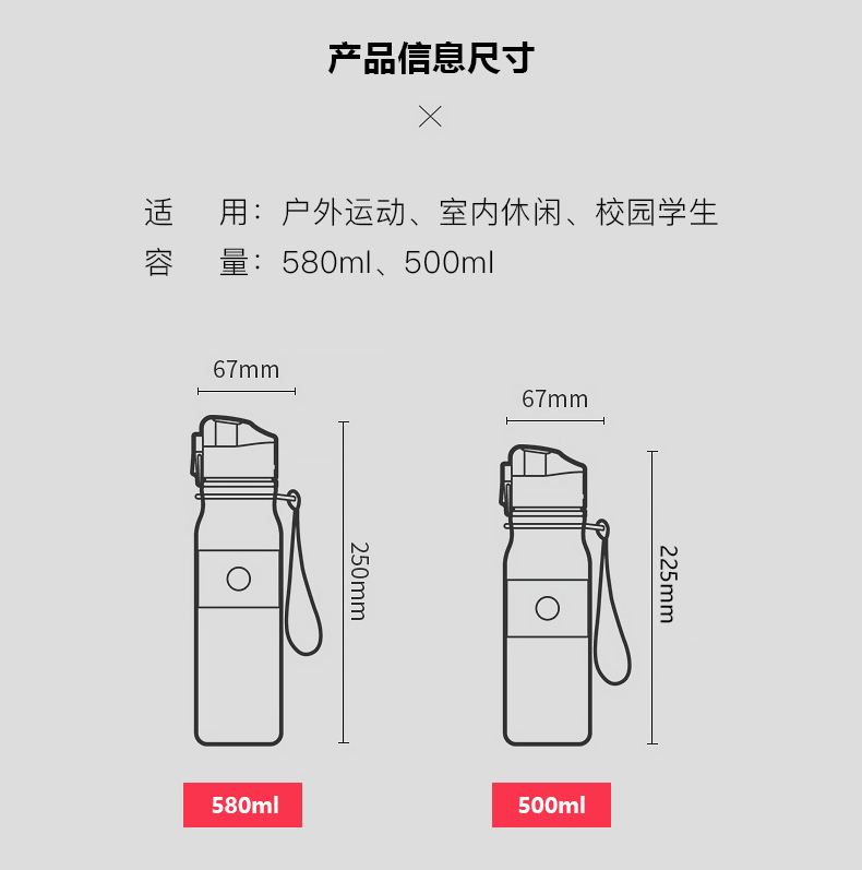 Outdoor space cup 500ML plastic leakproof sports cup