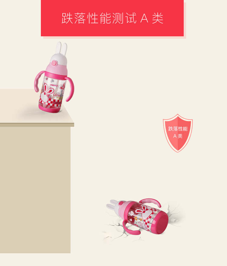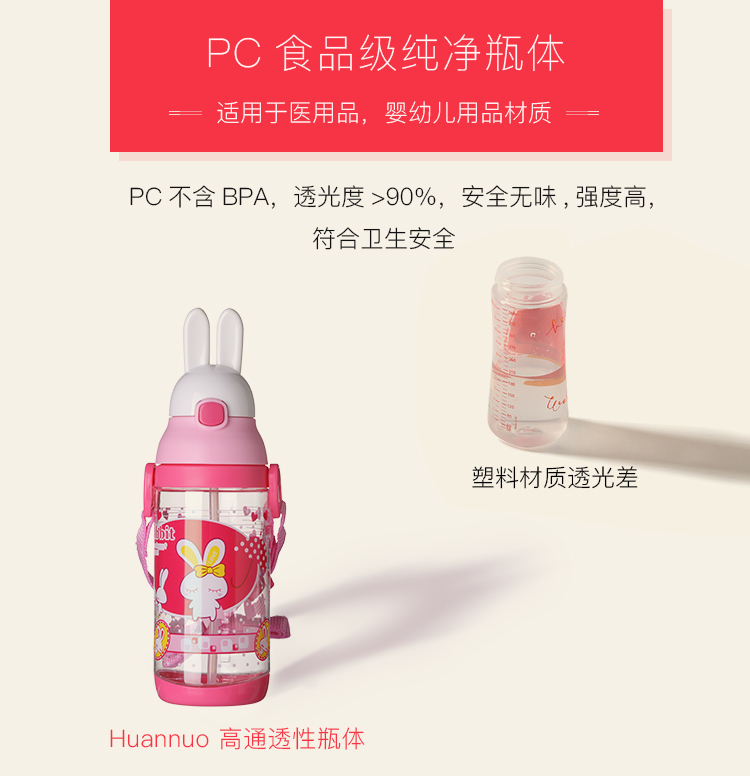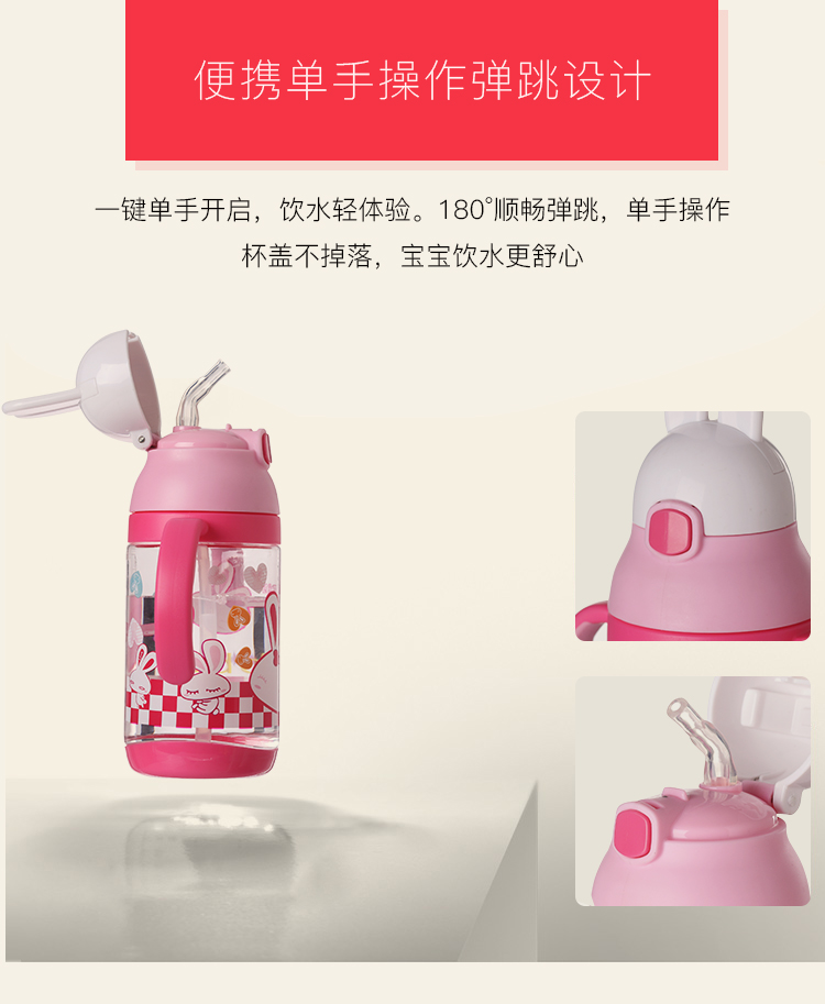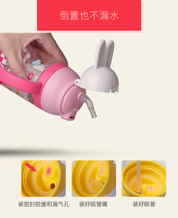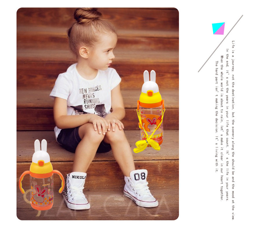 Outdoor water 500 ml water cup with suction nozzle plastic cartoon rabbit children