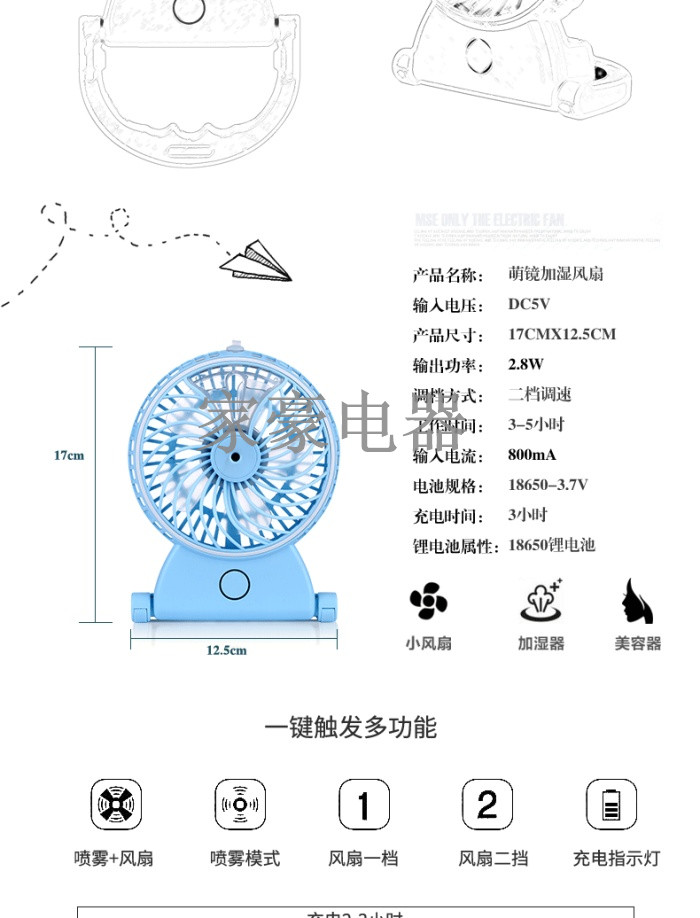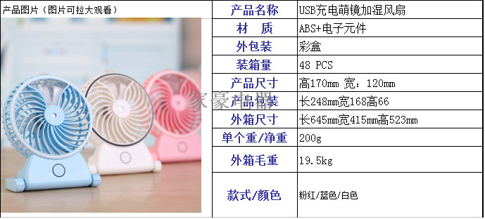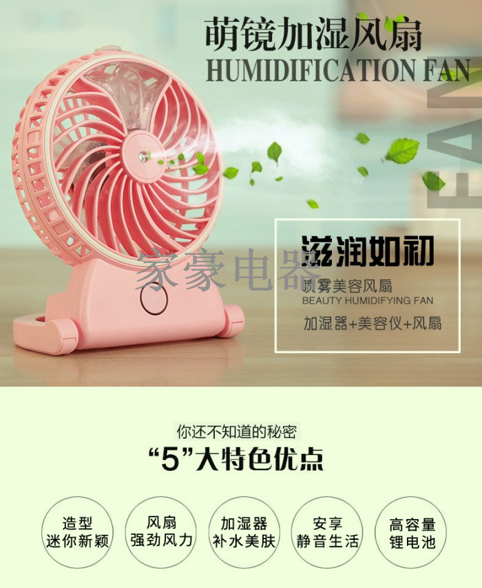 charging 5-inch desktop beauty cute mirror humidifying fan spray hydrating mini fan