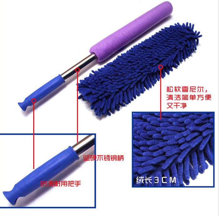 The microfiber chenille duster, is composed of many microfiber ball of wool, feel soft, in force in the process of the dust ash, ordinary duster will raise a lot of dust, only a small part of the adsorption to the duster, a lot of dust kicked up into the air, causing secondary pollution, polyester polyamide composite superfine fibre pompoms, there are many gaps in due to the ball of wool is the cylinder, so the ability of adsorption of dust is equal to the number of the ordinary a feather duster. Pole USES the stainless steel tube of 0.4 millimeter of wall thickness, beautiful and easy, durable do not rust, the dust such as the surface such as computer, furniture, car is brushed easily, it is one of the most ideal cleanness things of modern family.