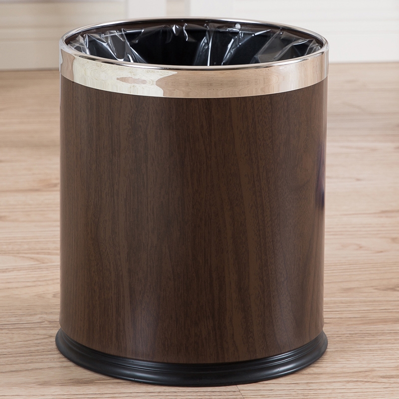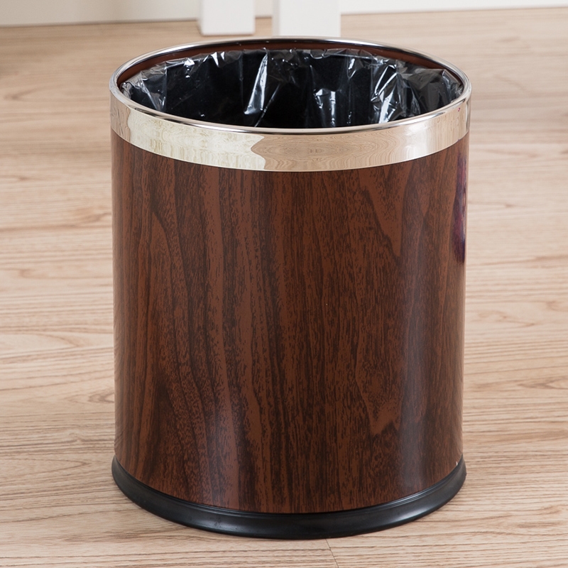 red brown wood grain double-layer trash can