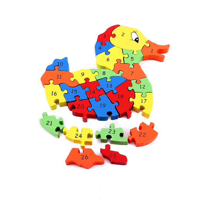 early education supplies 26 english letters and numbers cognitive wooden puzzle blocks duck puzzle intelligence toys