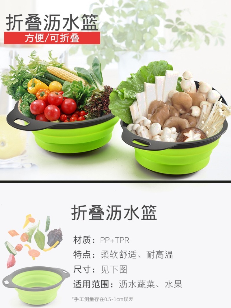 round direction foldable drain basket fruit basket kitchen storage multifunctional washing vegetable basket retractable fruit basket size