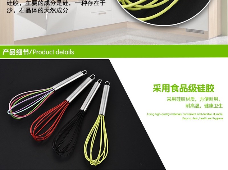 kitchen utensils silicone eggbeater stainless steel handle manual household blender creative egg-whisk